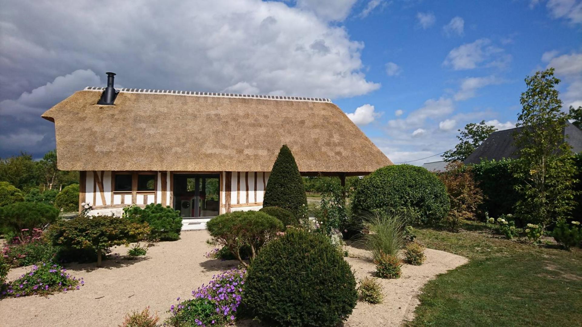 Restauration d'une maison normande en colombages de type longère en chaume à Cany-Barville proche Yerville en Seine Maritime 76